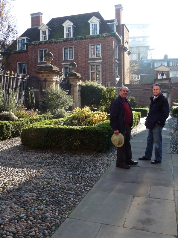 As we stand in the Porter’s Lodge (official entrance), Barry explains that each college has at its physical core (and usually in its main—and original—courtyard) a Master’s Lodge, a Chapel, and a Hall—reflecting the historical, communal functions of administration, worship, and meals—as well as student living quarters, Fellows’ offices, and the facilities of a moderately large community. The photo below shows the Master’s Lodge where he and his wife resided during his years as Master of St Catharine’s College.