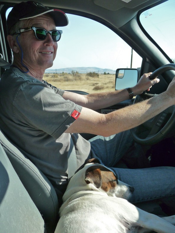 We pack up the night before so we can get an early start, are delayed in the morning by technical difficulties unworthy of explanation here, and end up hitting the road a couple of hours later than planned. No matter. What’s important is that the new Ford proves eminently suitable as tow vehicle: no longer does the trailer wag the truck, we aren’t worried the engine will overheat, and—bonus—Basil can ride up front on the bench seat without squishing me under thirty-five pounds of terrier hound.