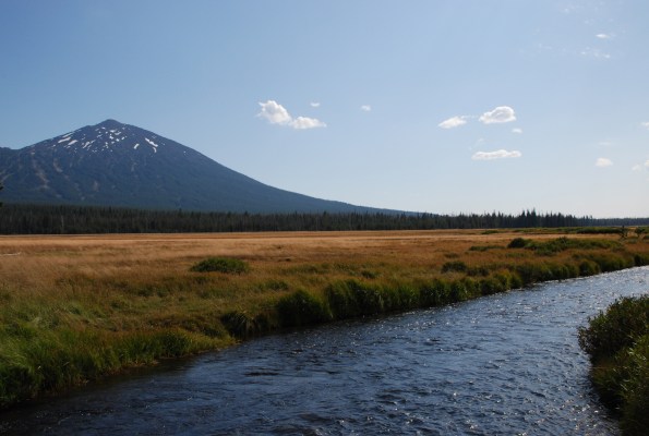 Bone-dry tumbleweed careens across the highway. We are traveling through the Warm Springs Indian Reservation, a vast high desert of parched canyons and grasslands adorned with rocks and scrub and an occasional pine tree. The weather forecast calls for a high of 90 degrees, inspiring us to change our plans for the night. Instead of camping on the outskirts of Bend, we push on, seeking cooler temperatures in the mountains.