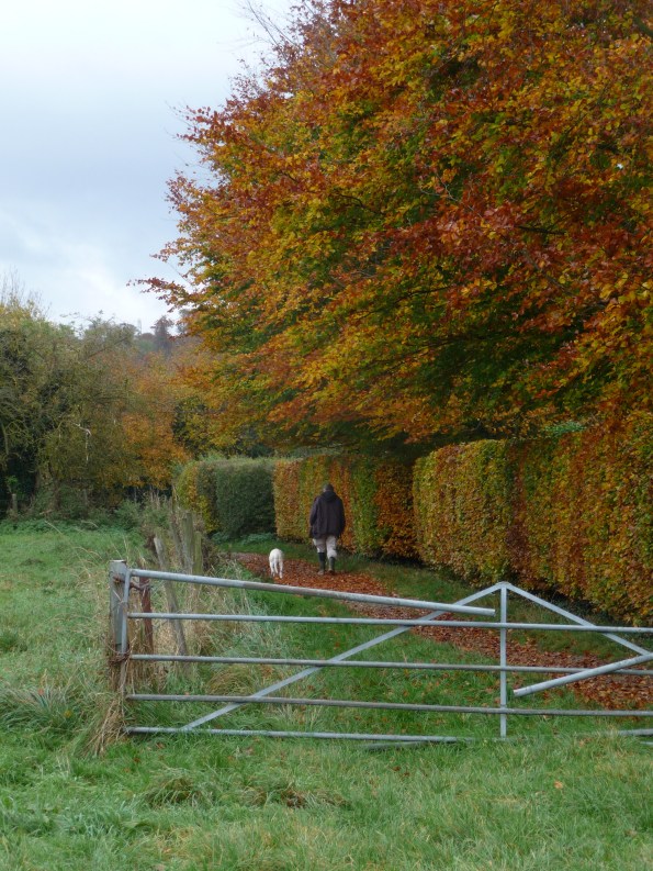 Then it’s the weekend. Dave and I plot a special outing each day. Saturday, after a pub lunch, we brave dark skies and a few raindrops to stroll through woods and fields and along a footpath beside the Thames.