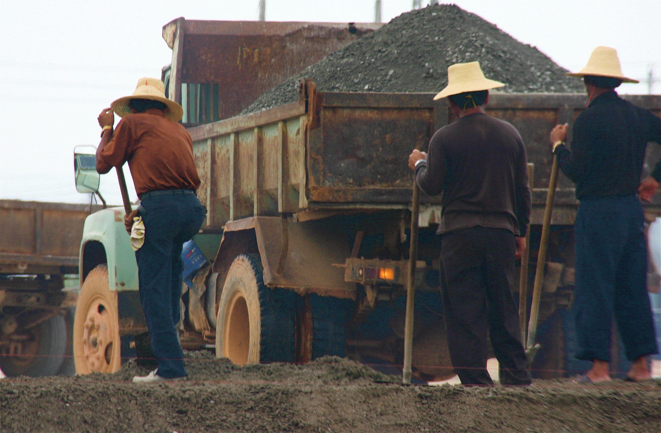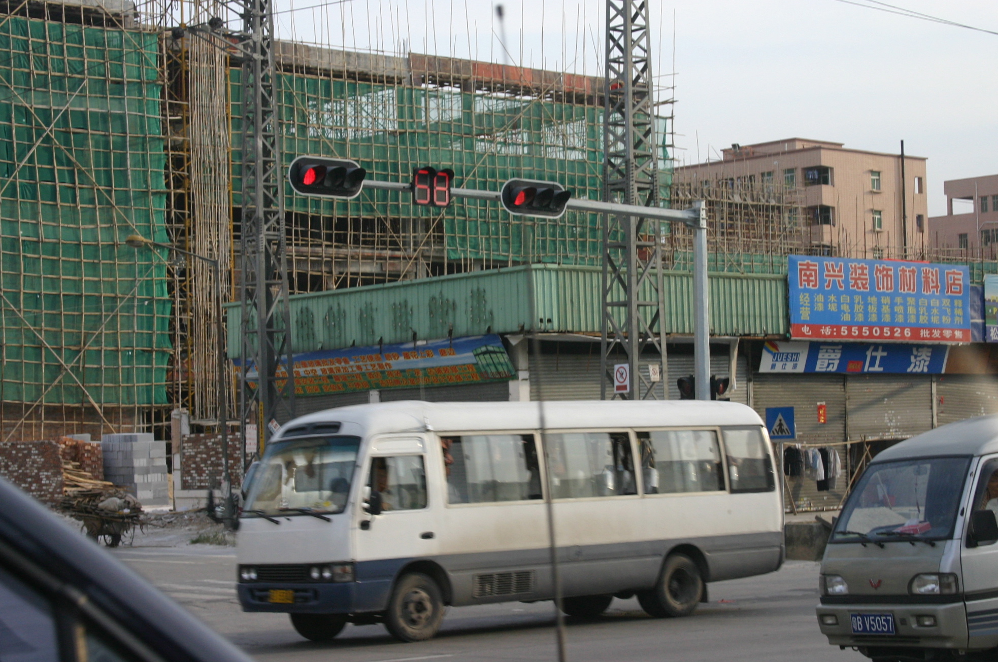 Everything seems under construction, half-finished buildings sheathed in rickety bamboo scaffolding and piles of masonry on the sidewalks.