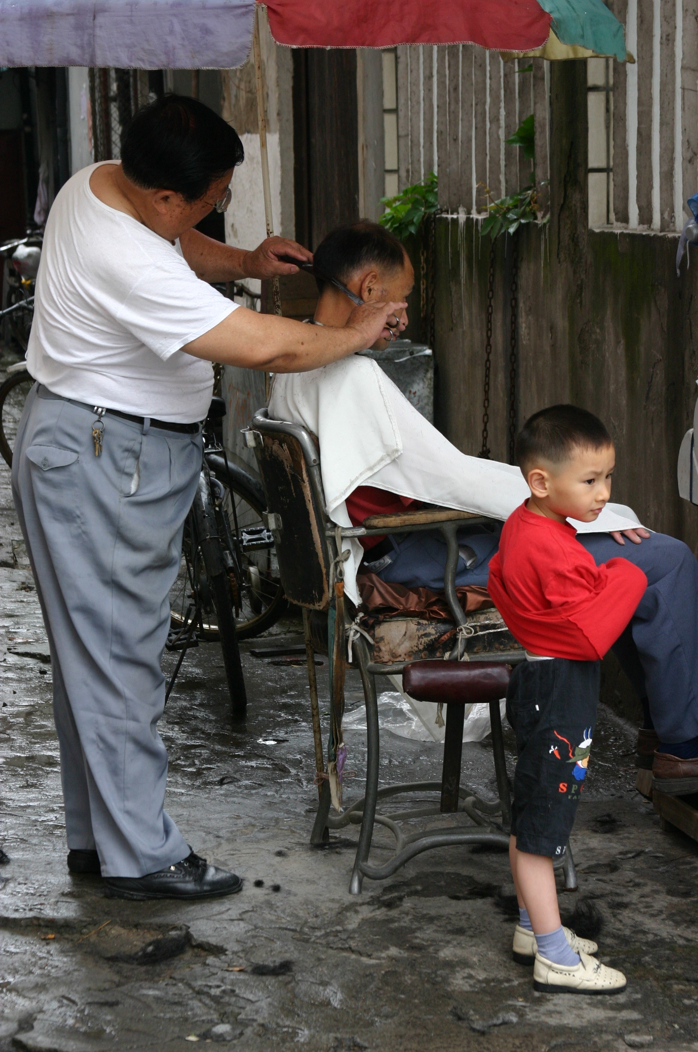 Much of life takes place on the sidewalks, where residents socialize, eat meals, buy and sell wares, drink tea, play cards, offer repair services, take naps, shampoo their hair and sit down for a shave and a haircut.