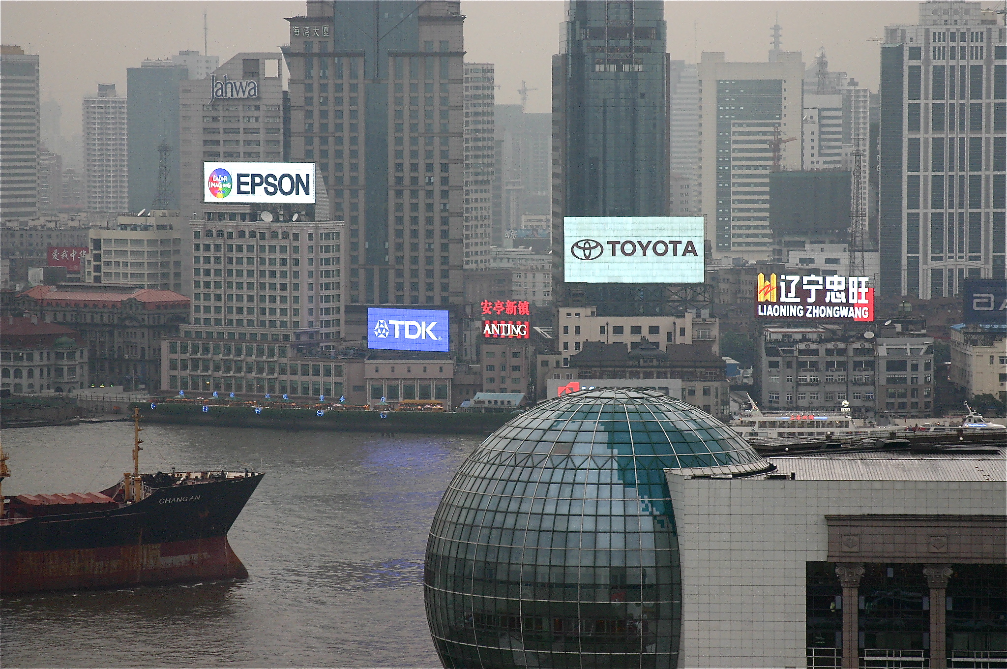 A ferryboat plies the channel between Taiwan and Guanzhou. We are on board, about to arrive on the mainland of China.