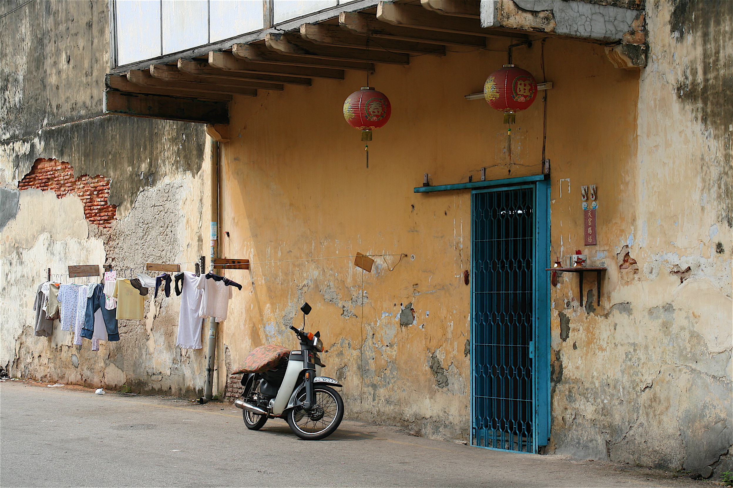 Simple row houses line both sides of the street, some restored and freshly painted, others in various stages of crumbling decay. All are inhabited, even the most decrepit.