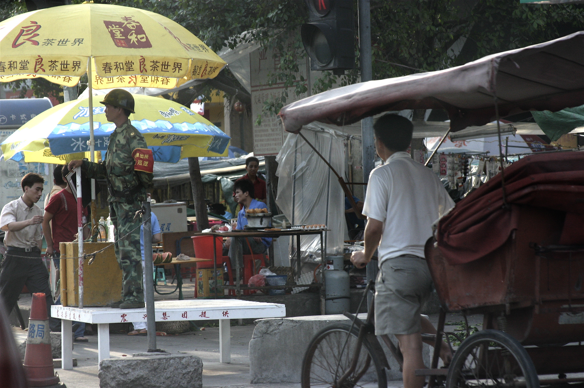 Armed military police are everywhere.