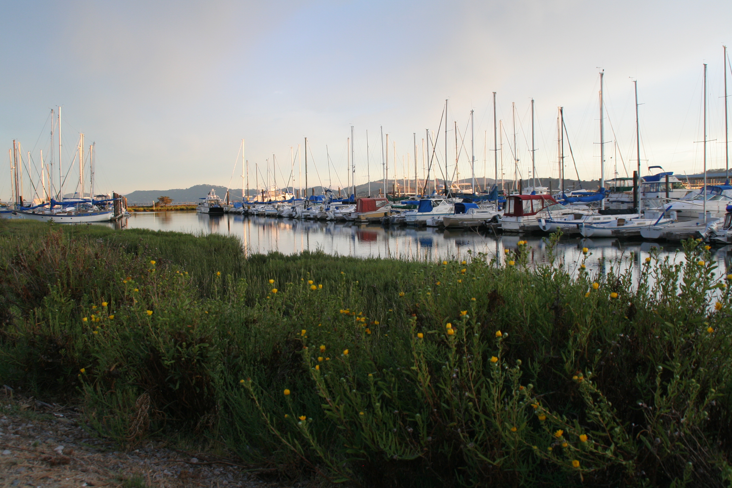 By now it’s dusk. A line of ducks ripples across the harbor surface, trailing rivulets of silver into the reeds along the shore. We walk Basil on the levee trail and he scampers ahead, the white banner of his tail weaving through stalks of dried fennel. All three of us seem entirely pleased to rediscover this place. Did we make the right decision to move away? Could we live here on a boat again? Like Odysseus, we seem to roam far and wide in a protracted quest for home.