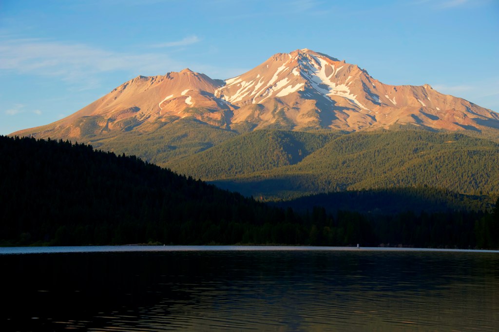After a full day of driving we land at Lake Siskiyou campground in plenty of time to set up camp in a secluded site on the water with a view of Mount Shasta.