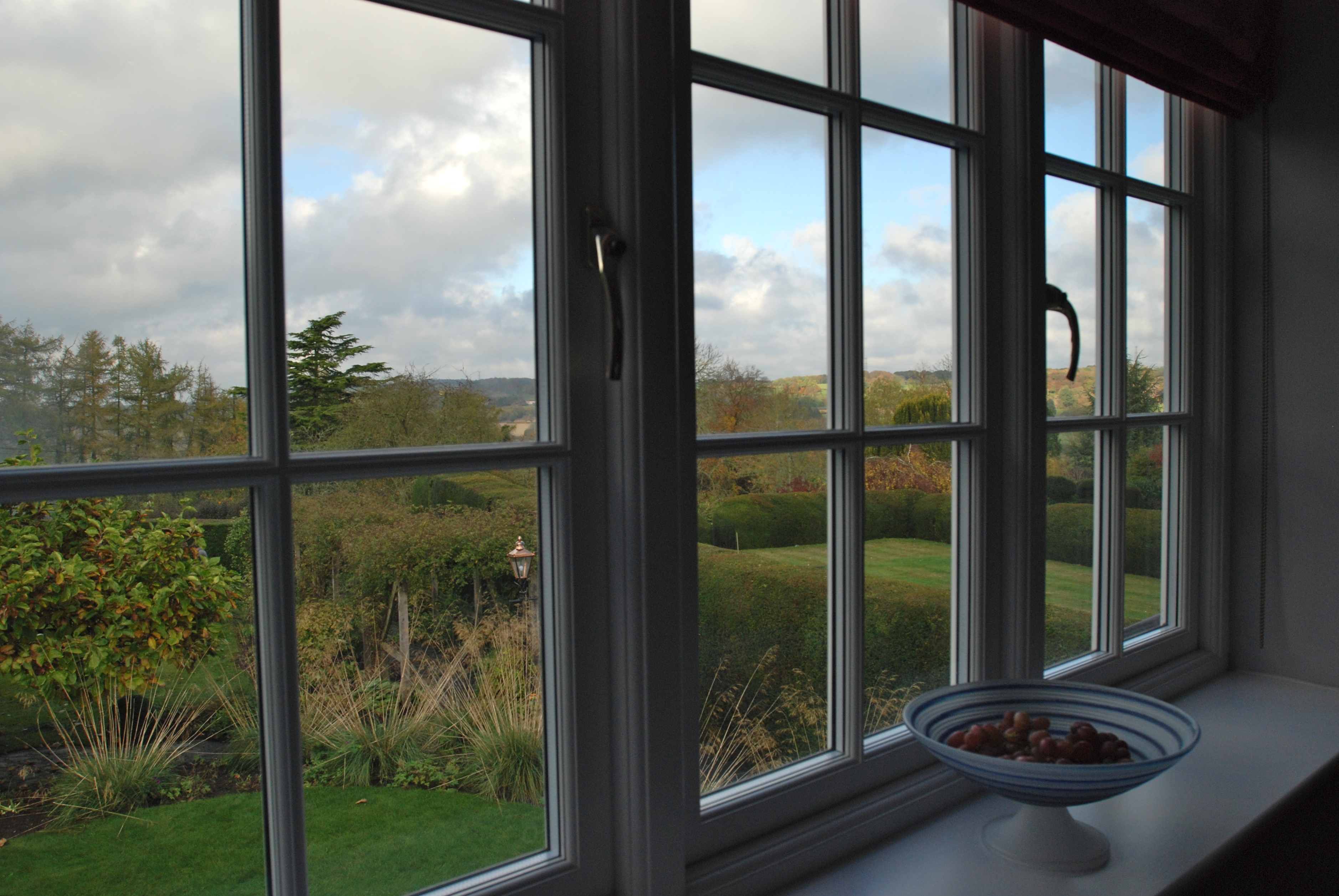 We never tire of our view overlooking Jenny’s well-kept garden and the Chiltern hills beyond.
