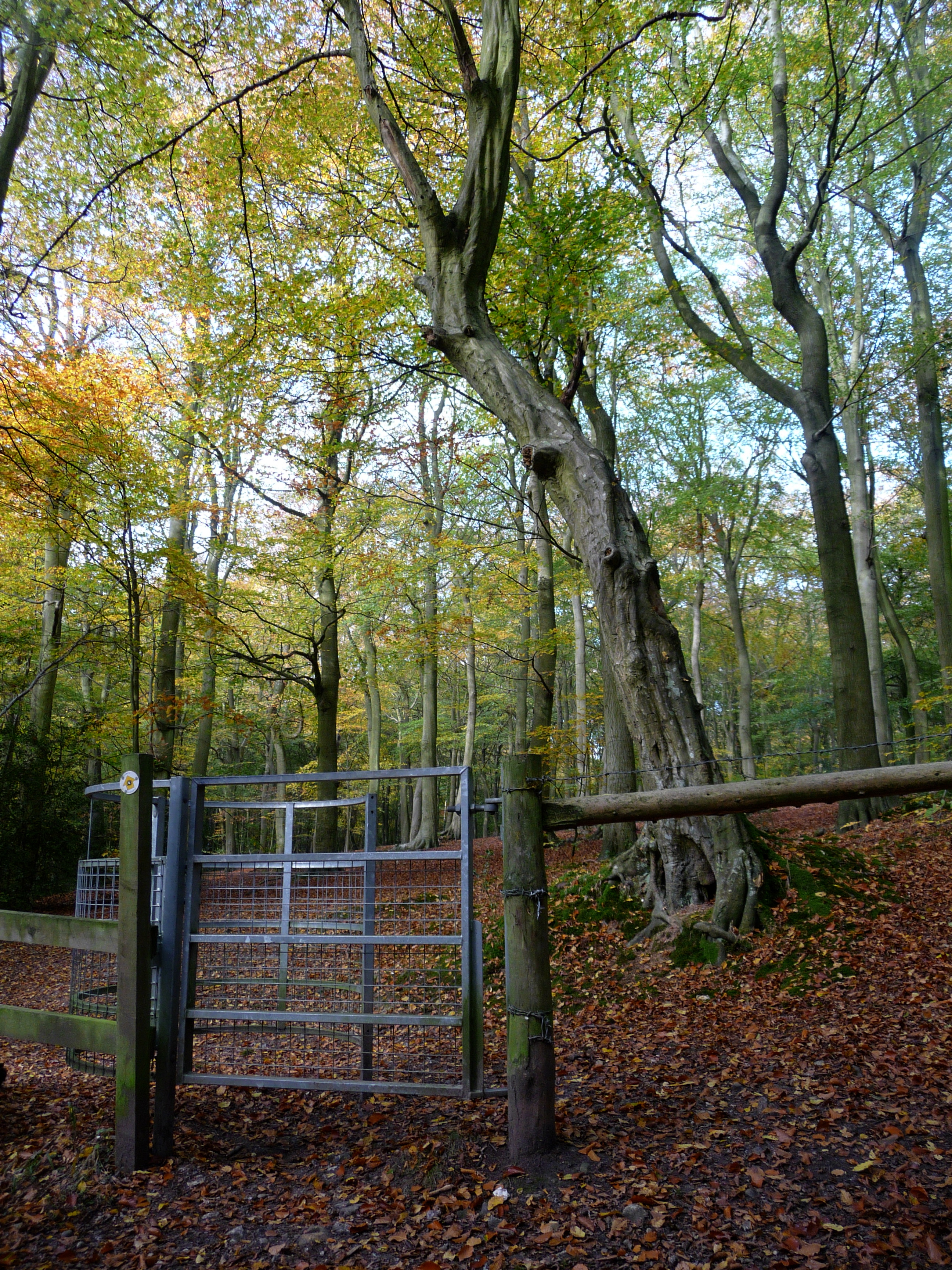“Leave the wood through a wooden kissing gate, following a path gently rising through the field.”